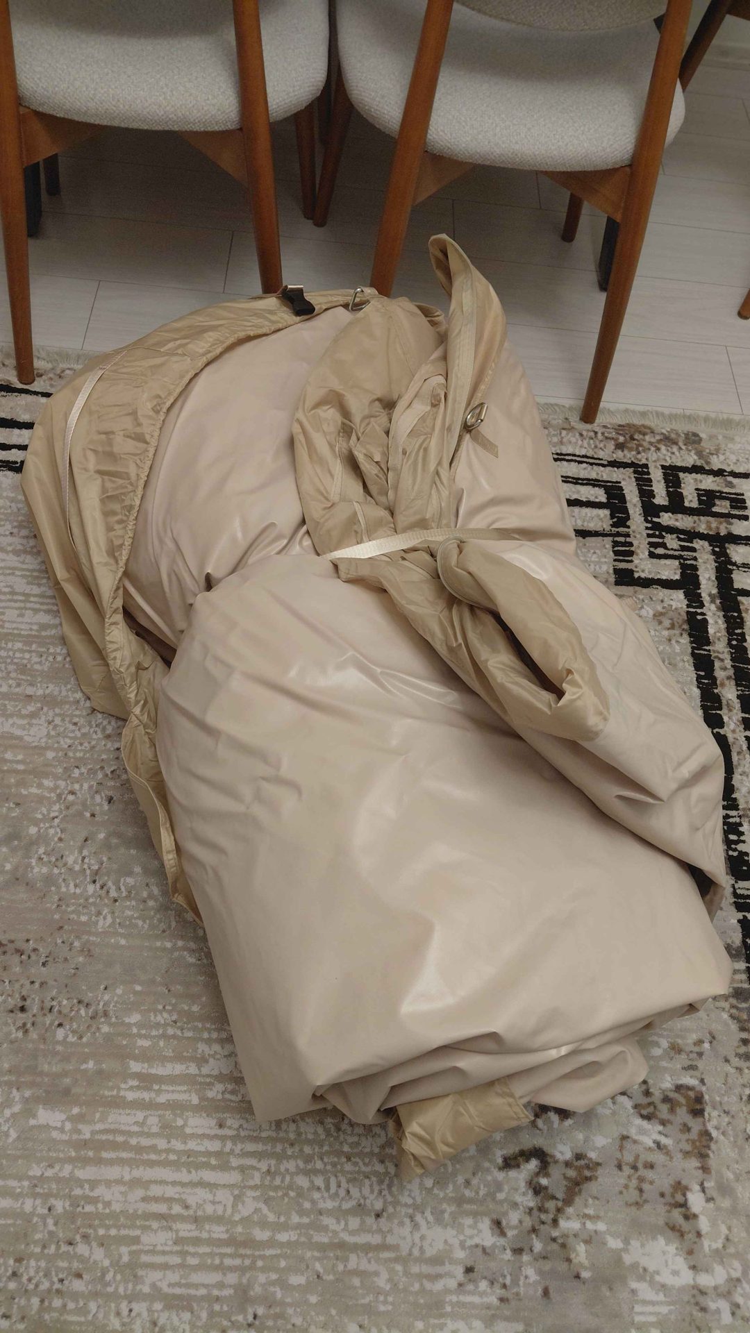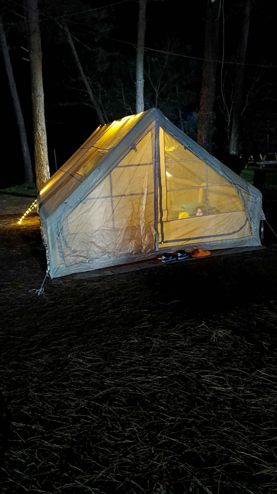 İlk şişirdiğimde kiriş eğikti ve iki üç saat sonra çadırın havası indi. Sonradan pompayla şişirilen bölgedeki halkanın tam sıkılı olmadığını görüp düzelttim. İlkinden biraz daha fazla olmak koşuluyla tekrar şişirdim. Kiriş düzelmişti ve çadır 15 saat geçmesine rağmen hava kaçırmadı. ilk şişirmede çadırı inen arkadaşlara tavsiyem şişirdiğiniz bölgedeki o halkaların tam sıkılı olduğundan emin olun