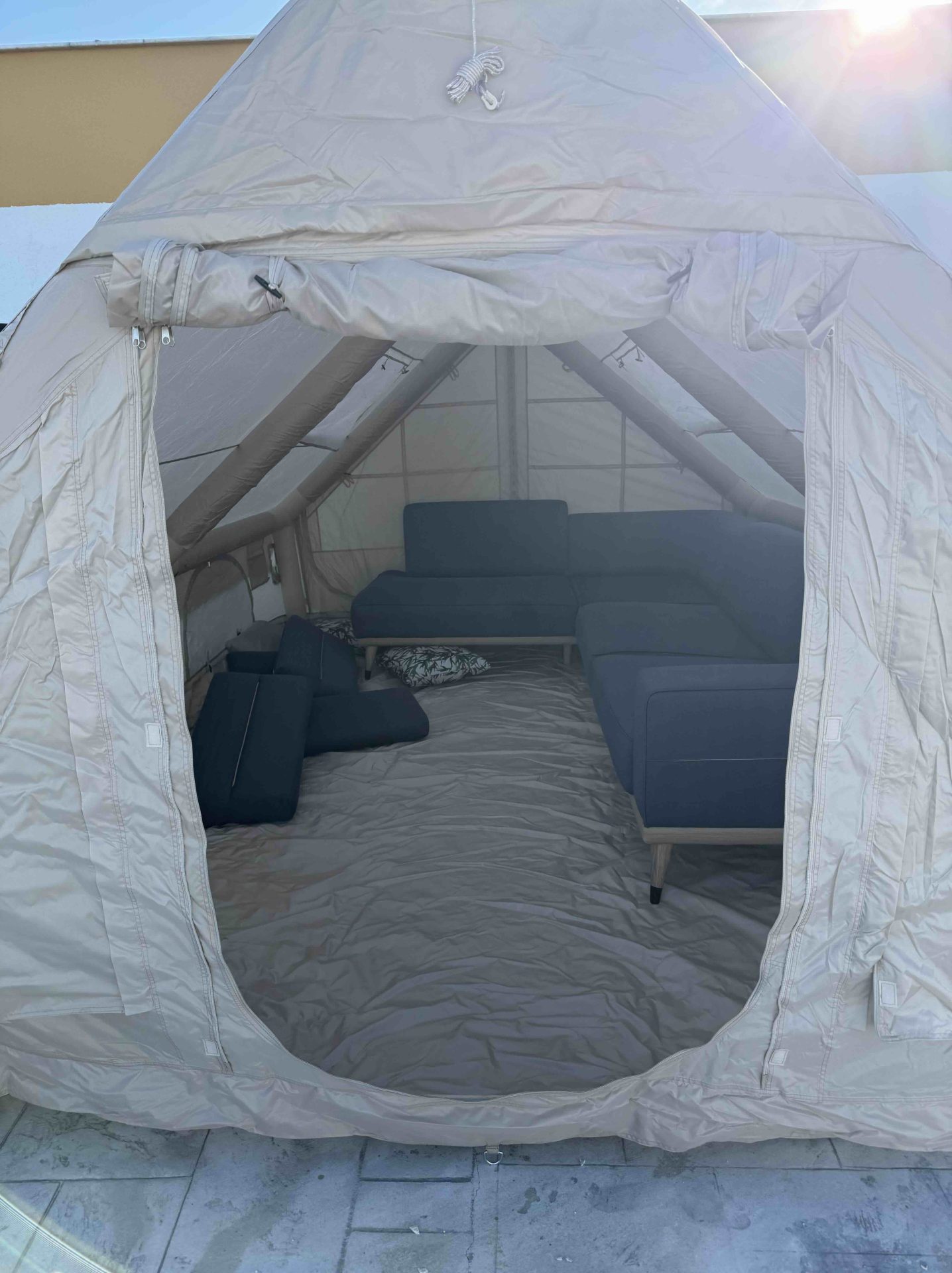 Doğa severlerin vazgeçilmezi robo şişme kamp çadırı geniş iç mekanı, dayanıklı malzemeleri ve kolay kurulumu ile sizi unutulmaz kamp deneyimleriyle buluşturuyor. Büyük boyutuyla geniş ve ferah bir yaşam alanı sunan çadırımız, aileniz ve arkadaşlarınız ile birlikte keyifli tatiller ve mutlu anlar yaşamanıza imkan sağlar.