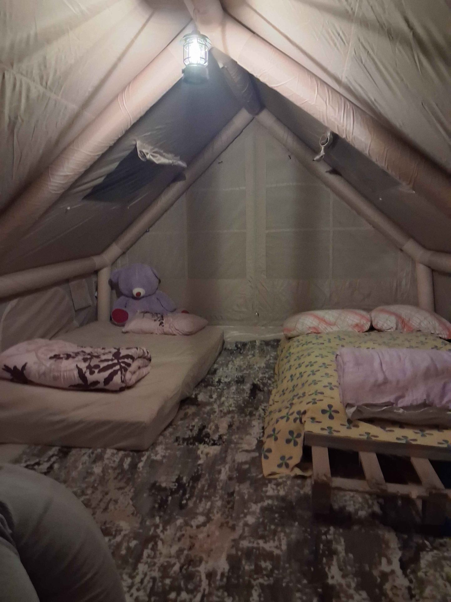 gerçekten çok güzel bir çadır kurulumu çok basit içine 4 adet çift kişilik şişme yatak rahatlıkla alır almak isteyen düşünmeden alabilir kesinlikle pişman olmaz