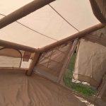İlk şişirdiğimde kiriş eğikti ve iki üç saat sonra çadırın havası indi. Sonradan pompayla şişirilen bölgedeki halkanın tam sıkılı olmadığını görüp düzelttim. İlkinden biraz daha fazla olmak koşuluyla tekrar şişirdim. Kiriş düzelmişti ve çadır 15 saat geçmesine rağmen hava kaçırmadı. ilk şişirmede çadırı inen arkadaşlara tavsiyem şişirdiğiniz bölgedeki o halkaların tam sıkılı olduğundan emin olun