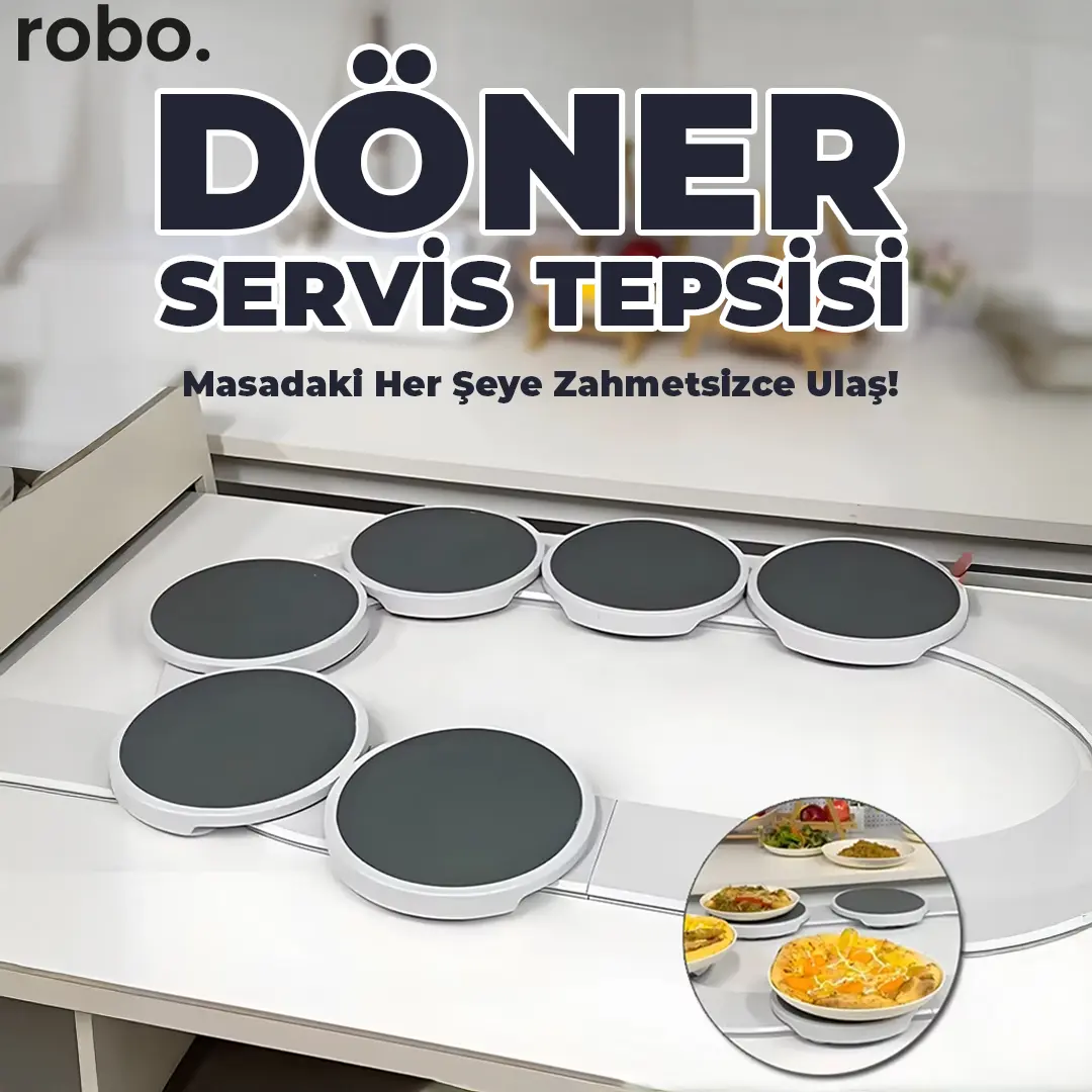 Kalabalık sofralarda servis artık çok daha pratik ve keyifli! robo Döner Masa Servis Tepsisi, 360° dönebilen yapısı, sessiz ve akıcı döndürme mekanizması ve ısıya dayanıklı servis tepsileri sayesinde masadaki yiyecek ve içeceklere kalkmadan kolayca ulaşmanızı sağlar.