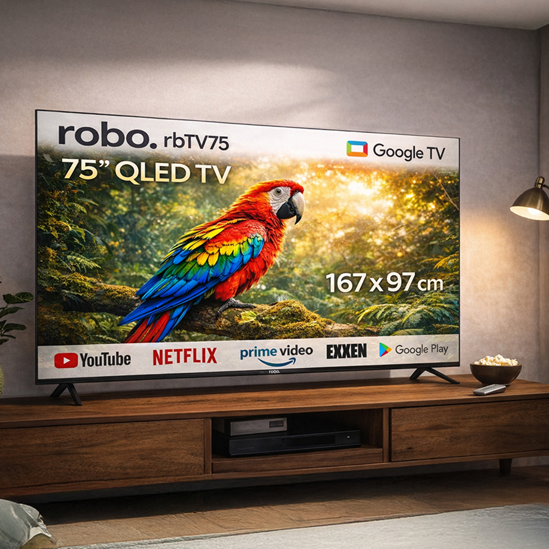 💡 robo 75” QLED TV, kompakt boyutu, güçlü donanımı ve etkileyici görüntü performansıyla salonunuza sinema atmosferi getirir.