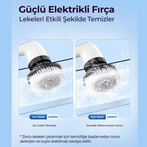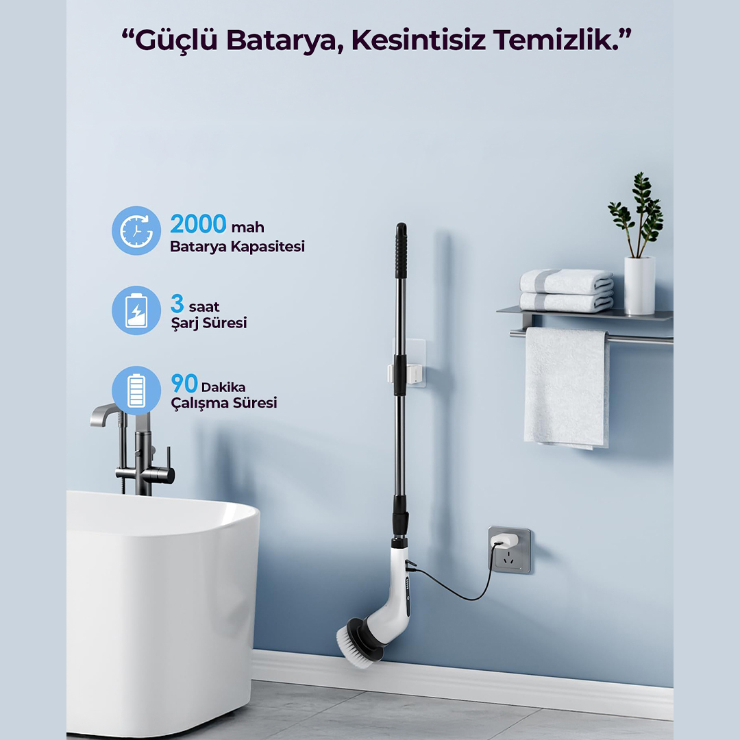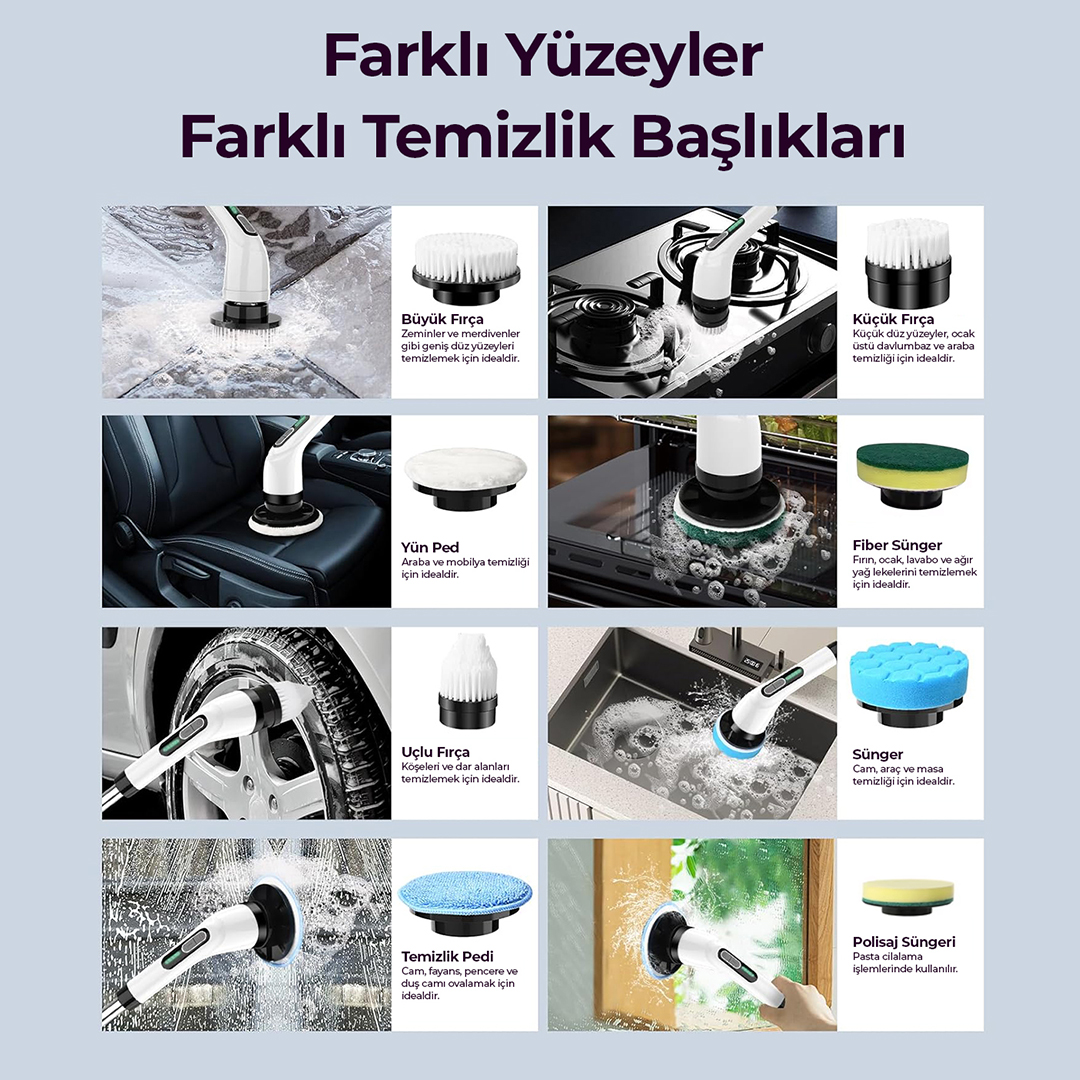 Güçlü Tork, Kablosuz Kullanım evinizin bütün alanları tertemiz Ev temizliğinde zaman ve enerji harcamanıza gerek yok! 8 başlıklı Çok Fonksiyonlu Şarjlı Temizlik Fırçası, yüksek tork gücü, ergonomik tasarımı ve ayarlanabilir hız seçenekleriyle temizlik deneyiminizi tamamen değiştiriyor.