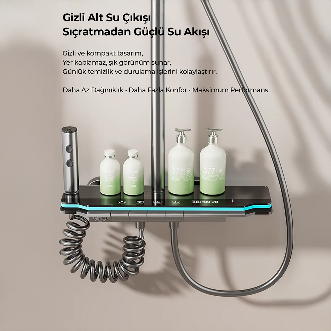 Üzerindeki dijital kontrol paneli sayesinde su sıcaklığını ve kullanım süresini anlık olarak görüntüleyebilirsiniz.