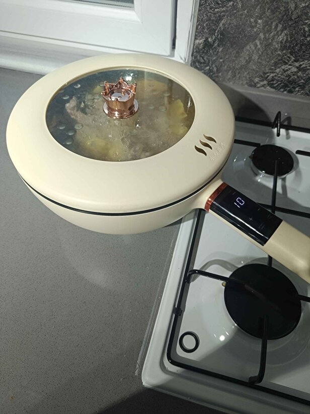 Ürün çok hafif ve çok kullanışlı çok hızlı ısınıyor biz yurtta kullanmak için aldık en az 4 kişilik yemek yapılır kızartma yaptık pilav yaptık ikisi de çok güzel ve hızlı oldu bir şey de yapışmıyor temizlemesi de kolay sadece kablosu biraz kısa yurtta kullanmak için çok iyi bir ürün