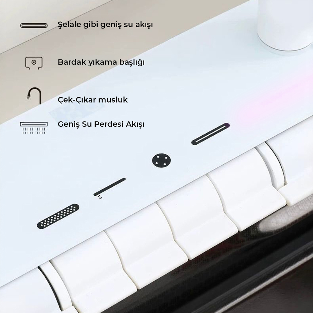 Ek Özellikler: Bardak yıkama, sabunluk, drenaj kontrolü, arıtma musluğu uyumu