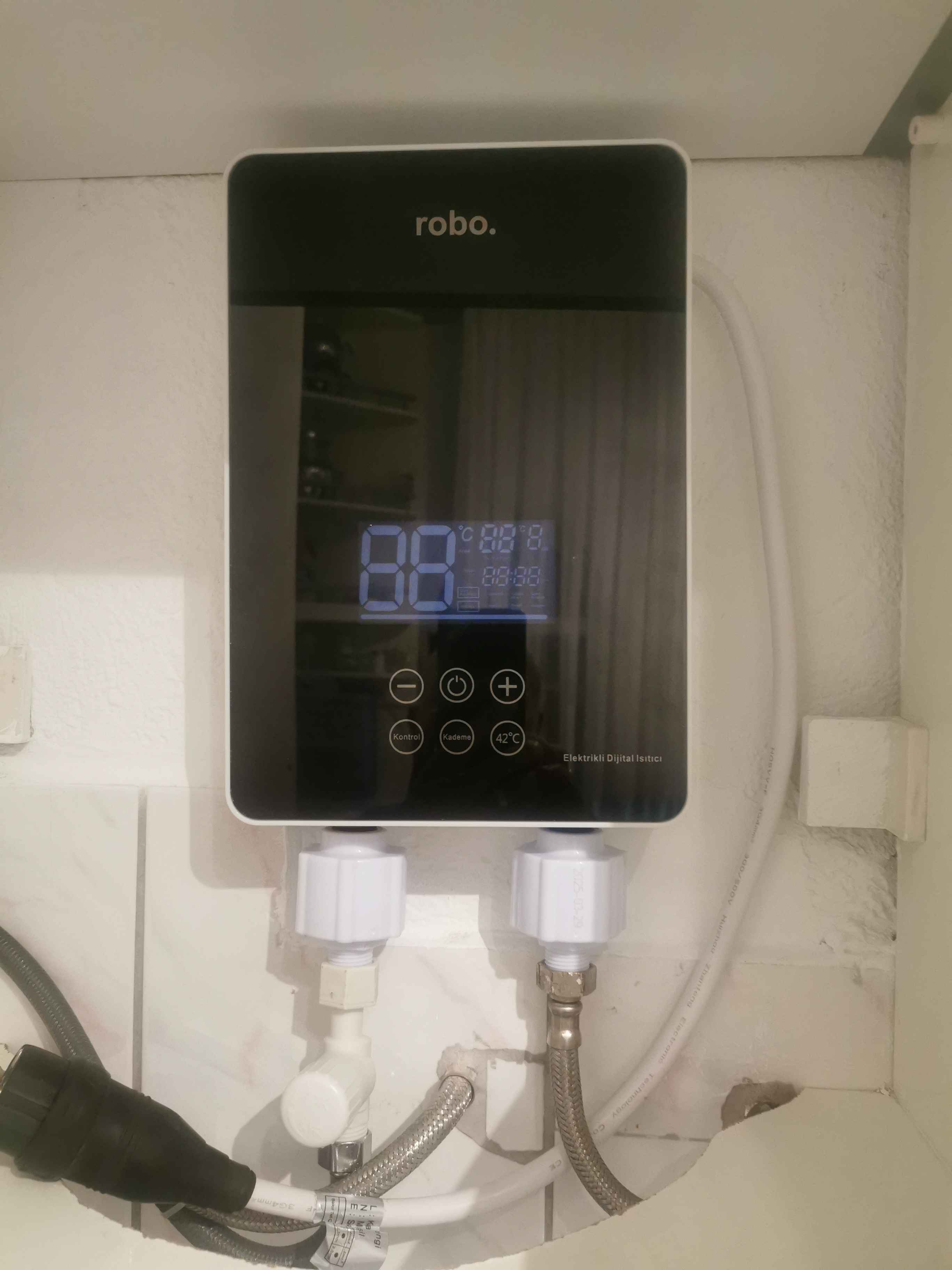 Harika bir ürün, herkese tavsiye ederim. Parasını hak ediyor. Kısa sürede istenilen sıcaklığa ulaşıyor. Benim evdeki sıcak su hattına kaloriferin ısı boyleri bağlı ama kazanı yüksek sıcaklıkta yakmadığımdan banyo için yeterli sıcaklık olmuyor (ortalama 33-35 derece). Şofben girişini bağladığım musluğun sıcak tarafına çevirip kullanıyorum. Normal şofben birinci kademede bile kaynatıyordu, bu nedenle soğuk tarafına biraz çevirip ayarlamak gerekiyordu. Ama Robo şofben aradaki ısı farkını tamamlayıp hem az güç harcıyor hem de istediğim sıcaklığı veriyor. Şu an (Ekim ayı) sadece 2kw veya 1 kw, max 3 kw ile ısıtıyor (boylerin ısısına göre değişiyor).