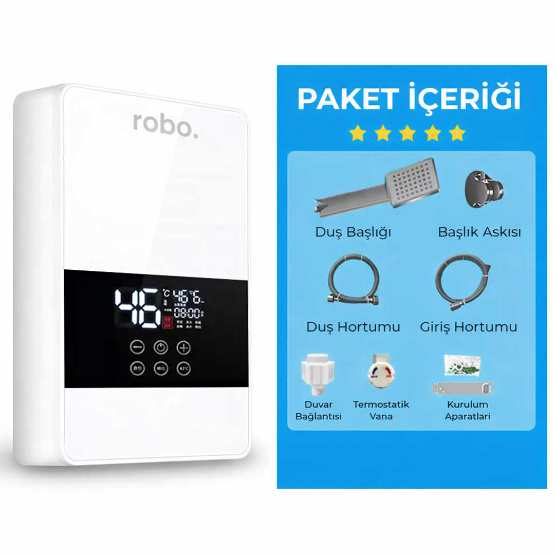 Tamamen yerli üretim olan Robo Dijital Akıllı Şofben, kalite ve dayanıklılığı bir arada sunar. Üstelik 2 yıl garantilidir.