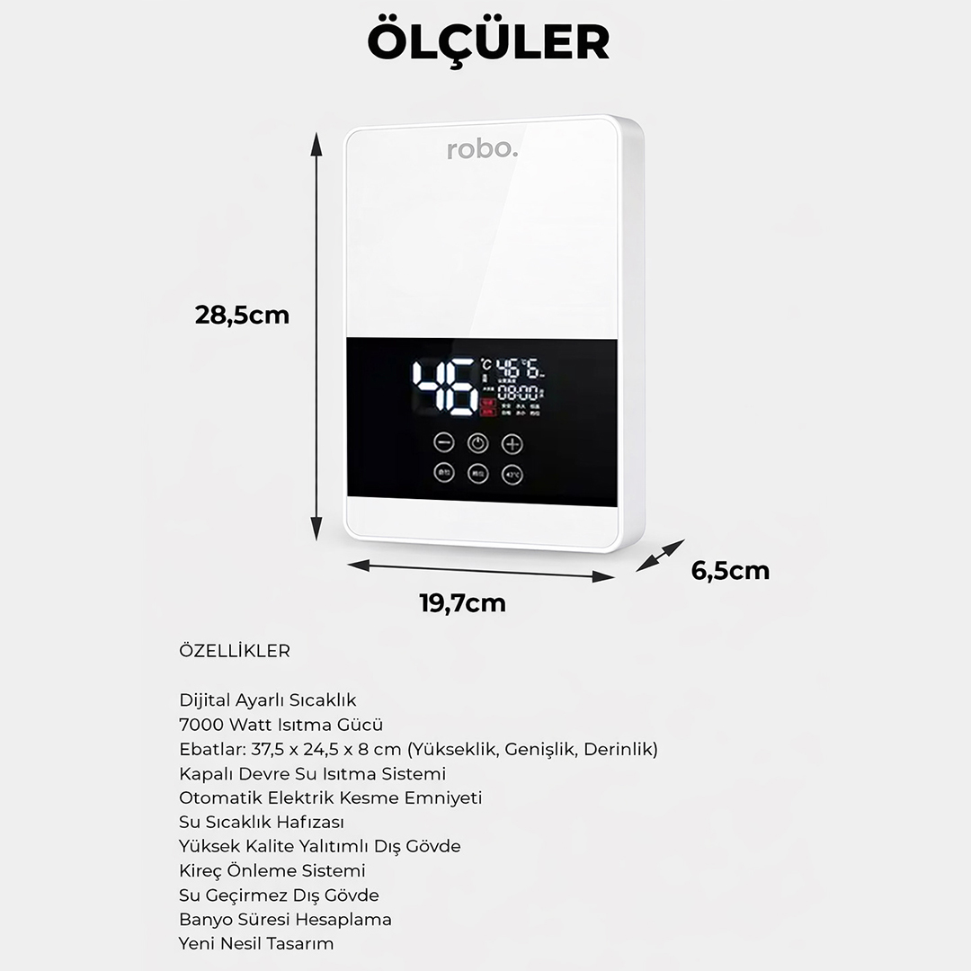 robo Dijital Akıllı Şofben Özellikleri: