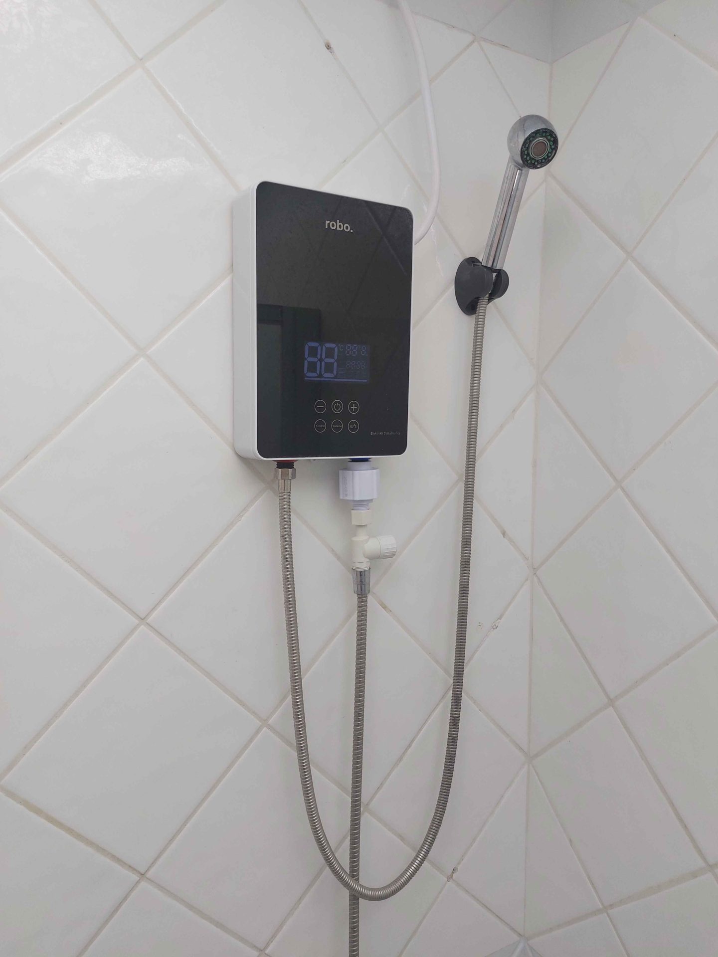 Harika bir ürün, herkese tavsiye ederim. Parasını hak ediyor. Kısa sürede istenilen sıcaklığa ulaşıyor. Benim evdeki sıcak su hattına kaloriferin ısı boyleri bağlı ama kazanı yüksek sıcaklıkta yakmadığımdan banyo için yeterli sıcaklık olmuyor (ortalama 33-35 derece). Şofben girişini bağladığım musluğun sıcak tarafına çevirip kullanıyorum. Normal şofben birinci kademede bile kaynatıyordu, bu nedenle soğuk tarafına biraz çevirip ayarlamak gerekiyordu. Ama Robo şofben aradaki ısı farkını tamamlayıp hem az güç harcıyor hem de istediğim sıcaklığı veriyor. Şu an (Ekim ayı) sadece 2kw veya 1 kw, max 3 kw ile ısıtıyor (boylerin ısısına göre değişiyor).