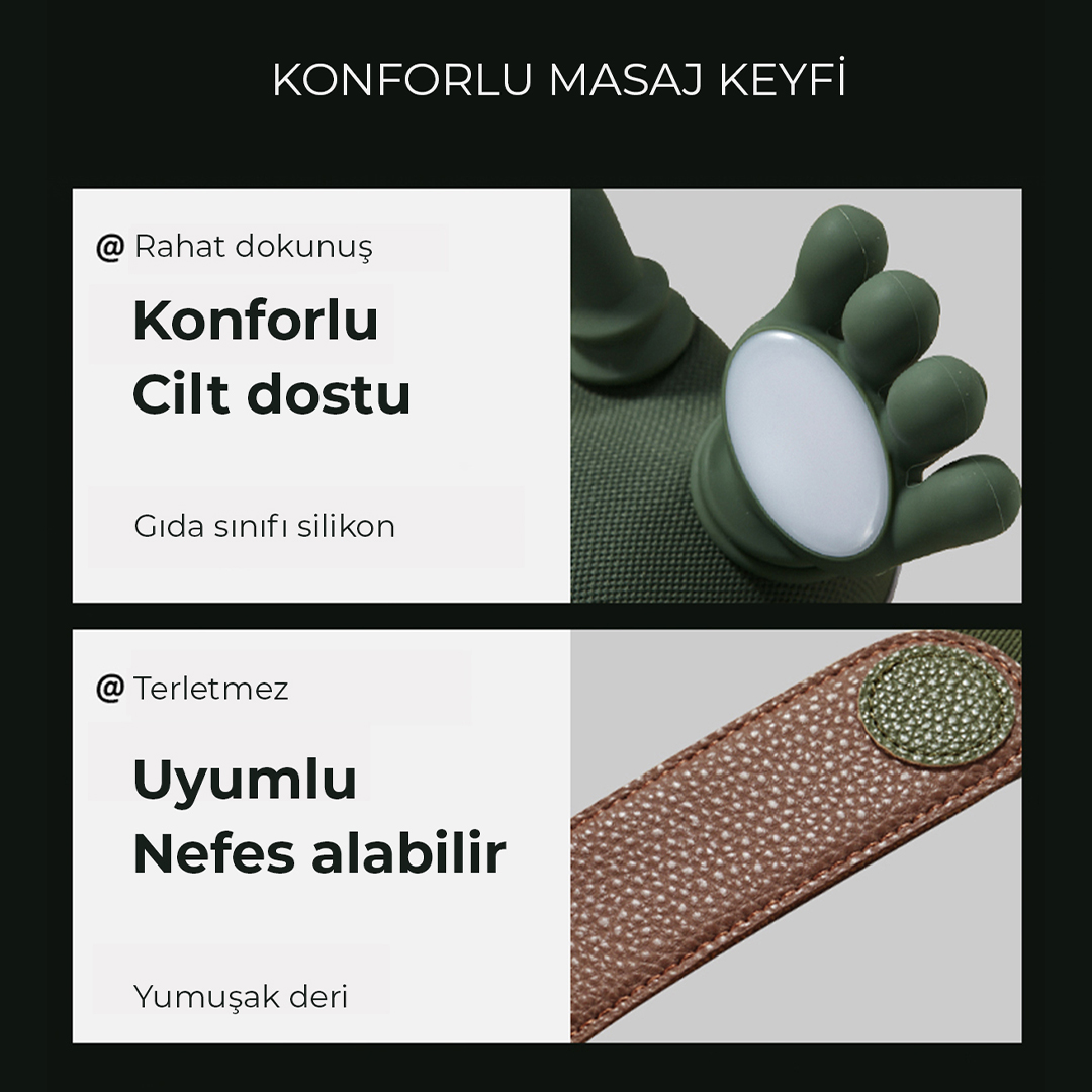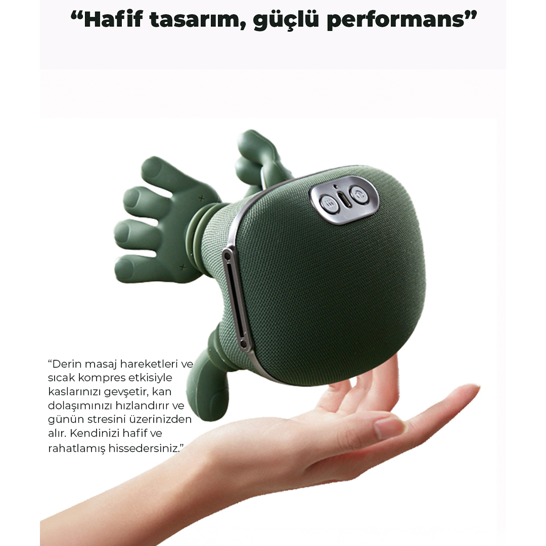El Simülasyonlu Derin Masaj Teknolojisi Özel olarak tasarlanmış esnek masaj başlıkları, insan elinin yoğurma ve kavrama hareketlerini birebir simüle eder. Hafif Tasarım, Güçlü Kompakt ve hafif yapısı sayesinde ister evde ister ofiste rahatlıkla kullanabilirsiniz.