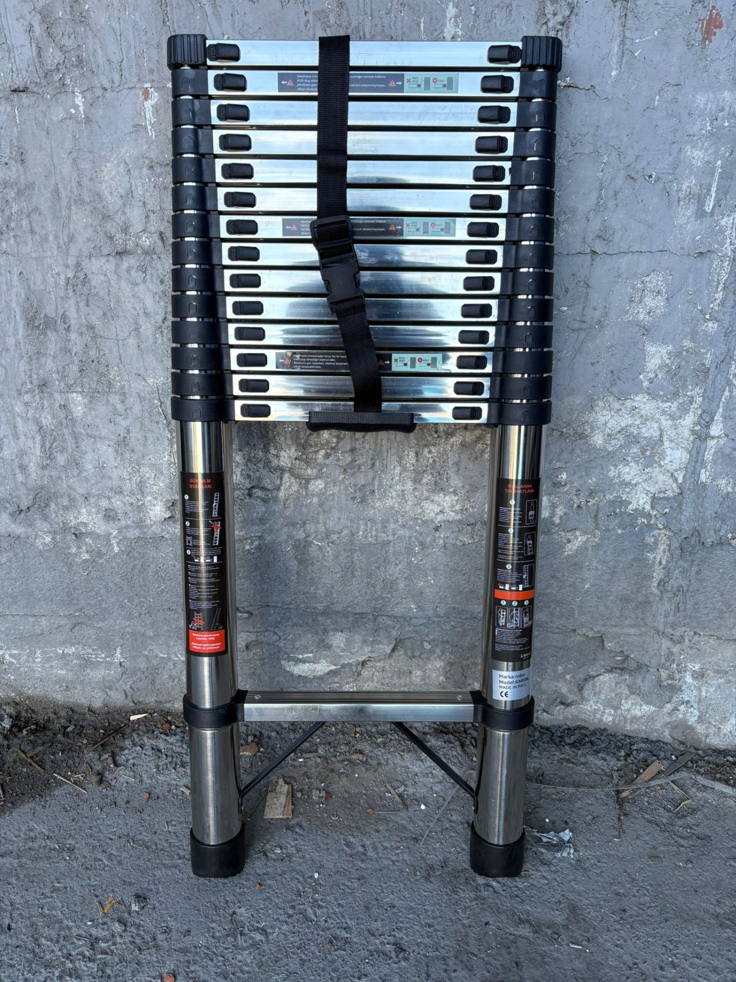 6 metrelik uzunluğu sayesinde yüksek alanlarda çok işimizi gördü. Dayanıklı paslanmaz çelik gövde sayesinde sarsılma yok, Katlanabilir oluşu da depolamayı kolaylaştırıyor. 150 kg taşıyormuş İnşaat işlerimiz için aldık. çok kalğiteli