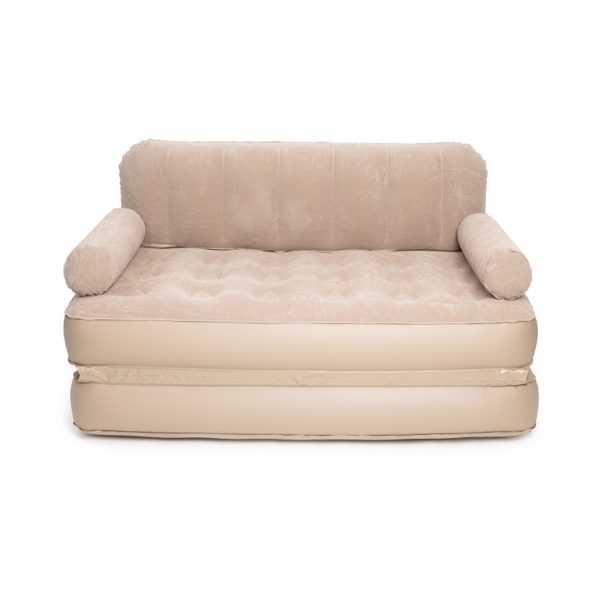 190×150×65 cm ölçülerindeki geniş yüzeyi, iki kişiye konforlu oturma veya uyuma alanı sunar. Açıldığında tam boy çift kişilik yatak, kapandığında ise modern bir şişme kanepe formuna dönüşür. 300 kg’a kadar taşıma kapasitesi ile dayanıklılığı test edilmiş yapıdadır.