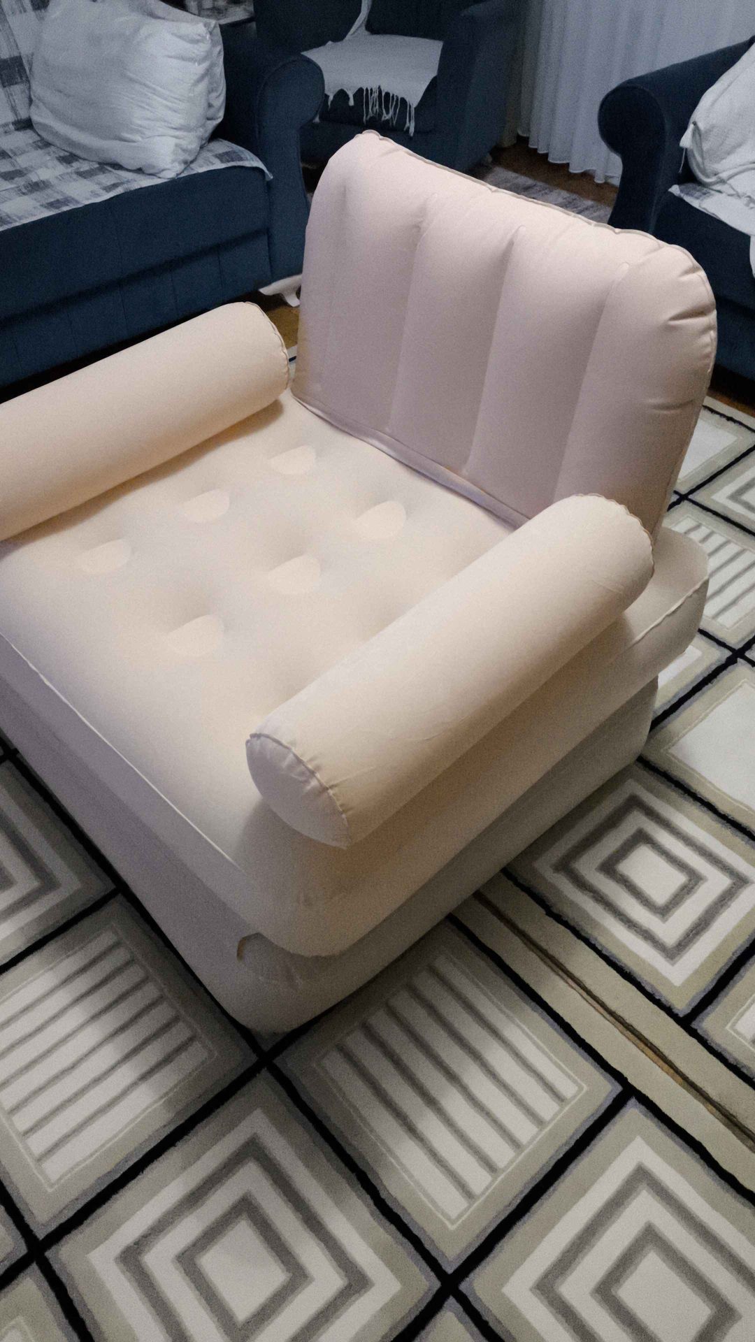 Koltuk beklediğimden çok daha kaliteli çıktı. Şişirmesi kolay, havasını da yavaş yavaş indiriyor, hemen sönmüyor. Misafir geldiğinde ekstra yatak olarak bile kullanıyorum. Rengi de fotoğraftaki gibi soft bir bej tonunda, odaya çok yakıştı. Tavsiye ederim.