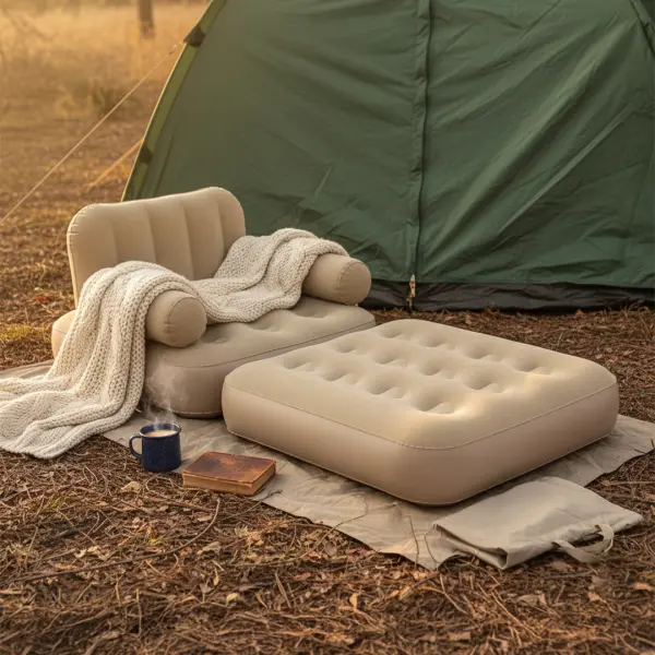 Dayanıklı PVC gövdesi, flok kaplı konforlu yüzeyi ve kendi kendine şişen yapısıyla otomatik kendi şişen robo şişme koltuk, hem koltuk hem de yatak olarak kullanılabilir. Kamp, seyahat, deniz kenarı veya evde dinlenme anları için mükemmel konfor sunar.