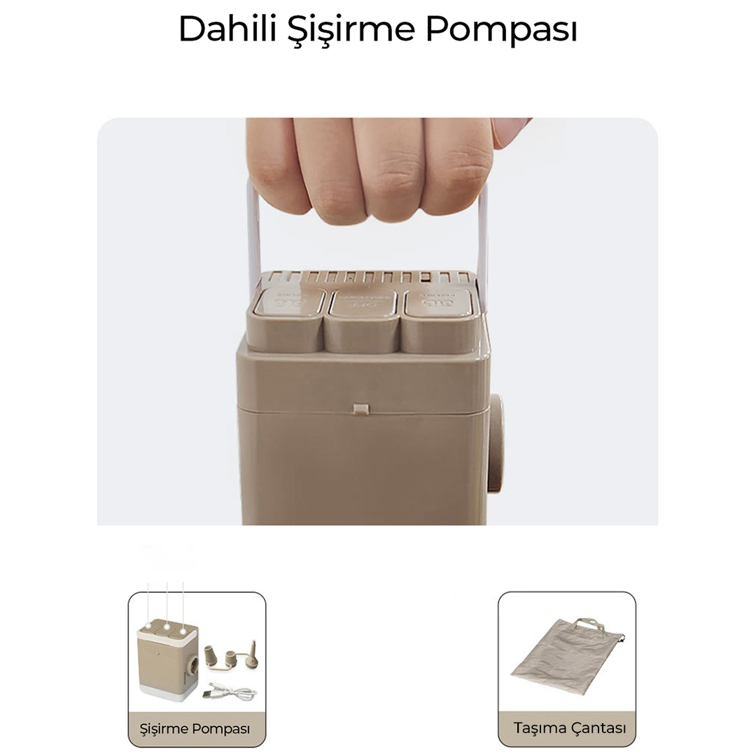 | Paket İçeriği | Dahili şişirme pompası, taşıma çantası |