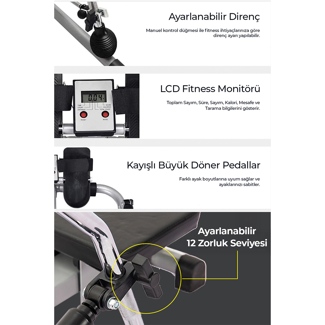 Katlanabilir Tasarım | 12 Direnç Seviyesi | LCD Ekran | Sessiz ve Güçlü Hidrolik Sistem