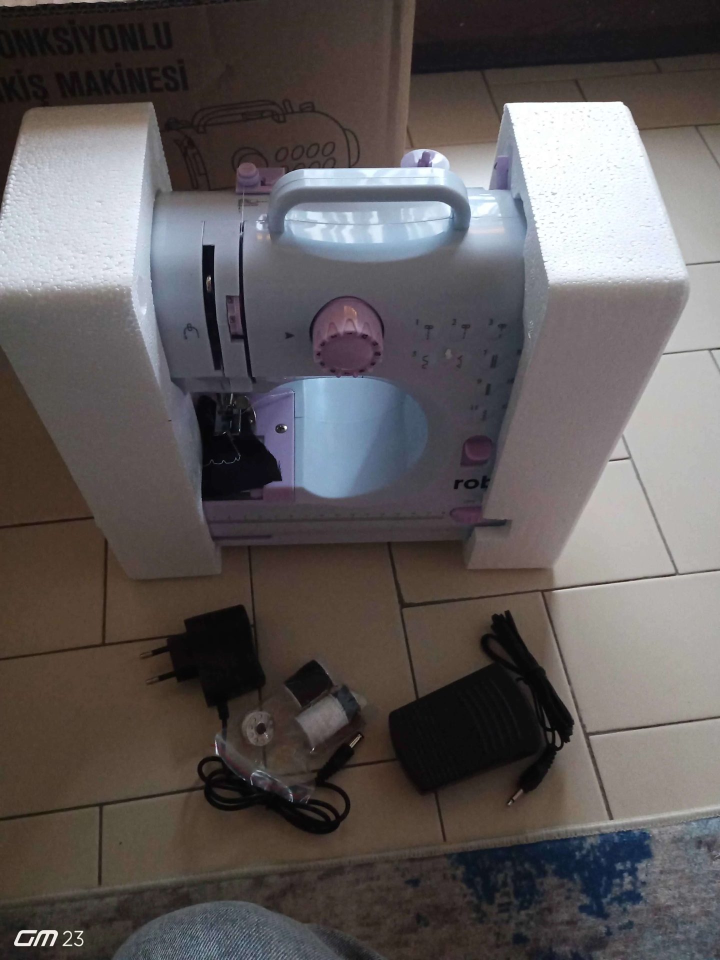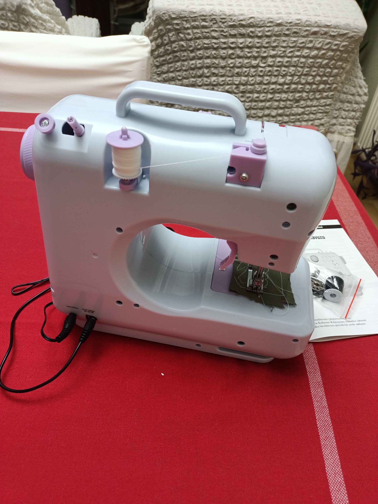 Çok minnoş ama işlevsel bir makine. Benim dikiş bilgim pek yok ama ben bile kolaylıkla kullanabildim. Ayarlarını yapıp göndermişler. Çekmecesi, yedek ipleri ve yedek iğnesi var. Ve portatif bir ürün yer kaplamıyor