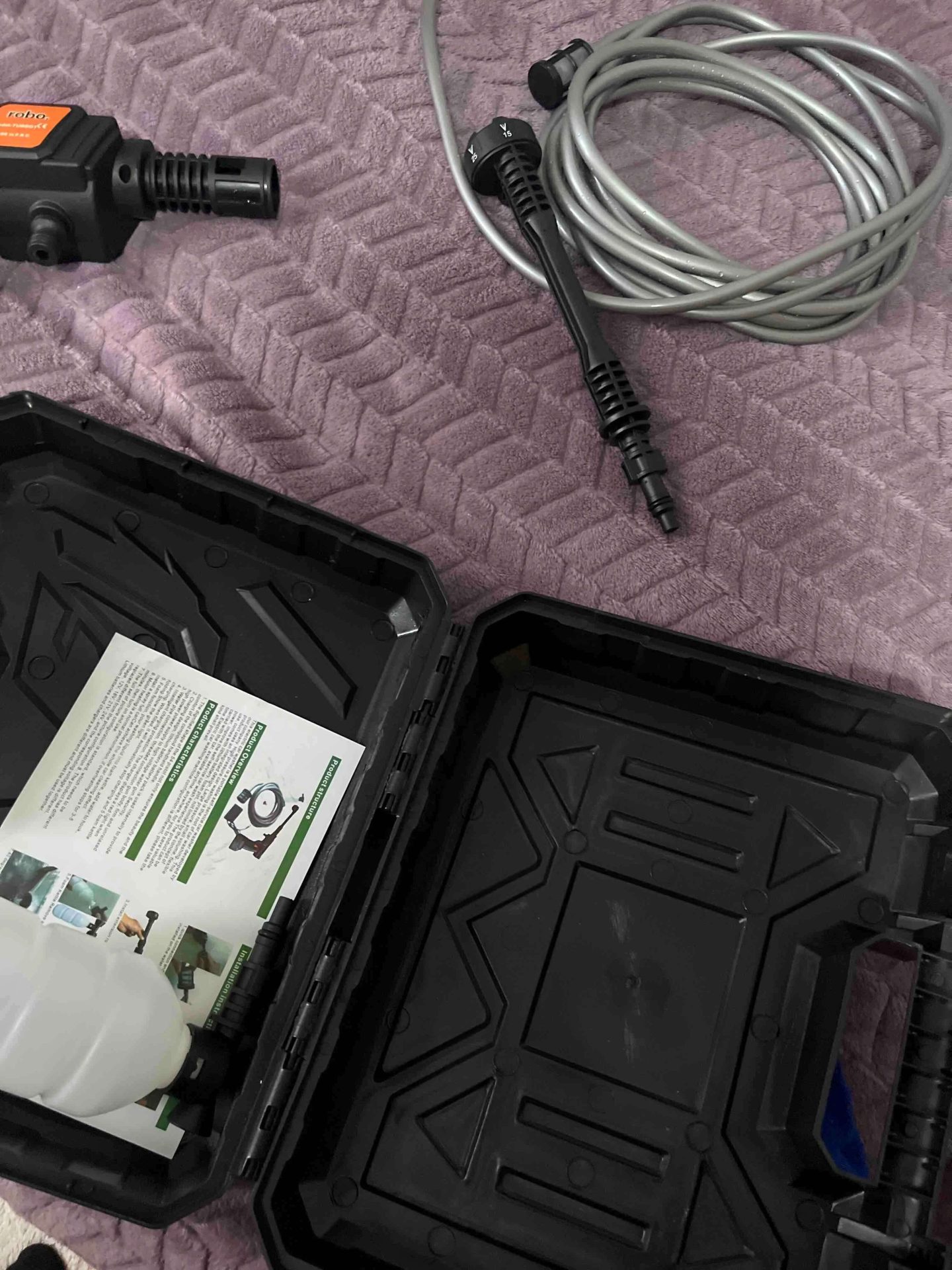 Ürün çantasıyla iyi bir ambalajlama ile geldi .tüm parçalar yerinde ve kalite montajlama basit,hortumum yumuşak oluşu çok iyi .denemesini yaptım şu hızı temizlik için yeterince iyi el tutarsanız acıtır.bu fiyata mükemmel diyebilirim.ayrıca hortum takma yerine su pet takma aparatı var yani hortumsuz su dolu 2,5 luk pet takıp kullanabilirsiniz.