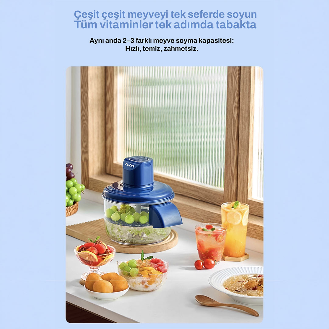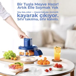 - Geniş Kapasite Hazne: Aynı anda çok sayıda meyve soyma imkânı sunar.