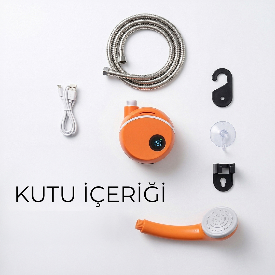 robo Dijital Portatif Duş, kablo bağımlılığı olmadan kullanım sunar. Şarjlı yapısı sayesinde sabit su tesisatı olmayan alanlarda da rahatlıkla kullanılabilir. Bu özellik, özellikle kampçılar, karavan kullanıcıları ve dış mekanda pratik çözüm arayanlar için büyük avantaj sağlar.