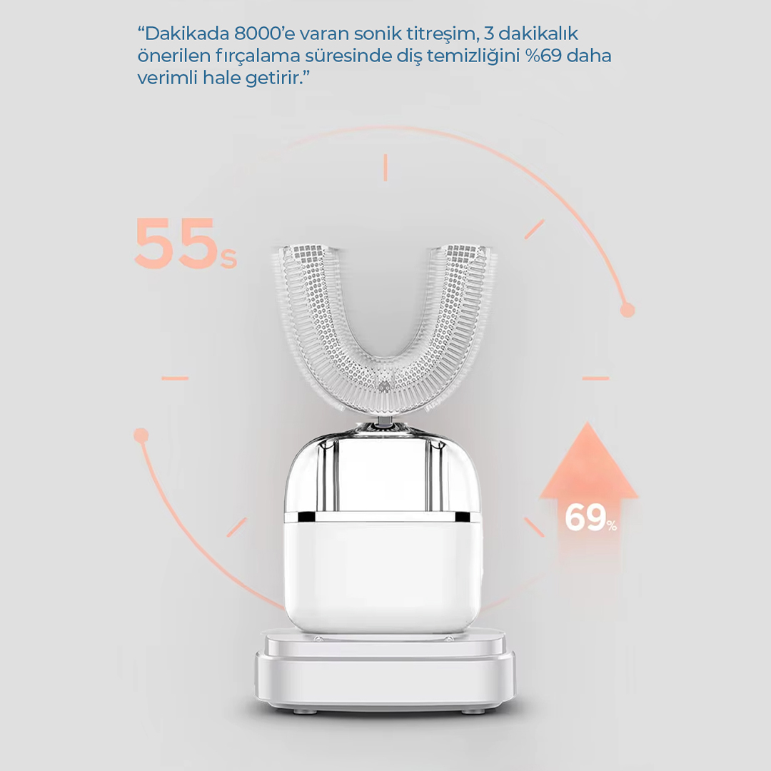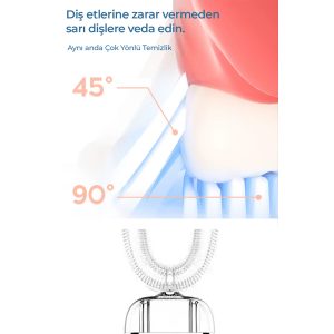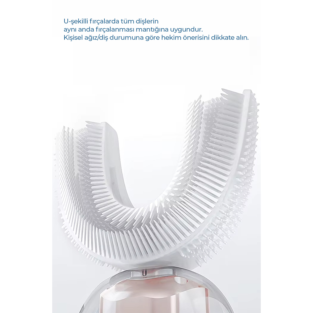 U-şekilli ağız tasarımı, sonik titreşim ve mavi ışık teknolojisiyle dişlerinizi 360° aynı anda temizler. Şarjlı, su geçirmez ve 4 farklı temizlik moduyla kusursuz ağız bakımı sağlar.