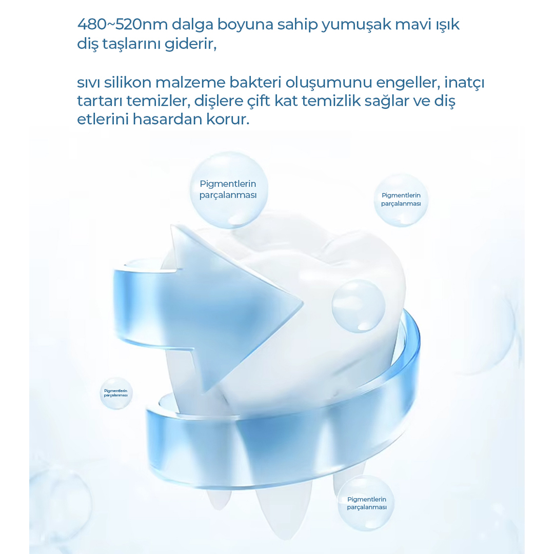 💡 Mavi ışık destekli beyazlatma (480–520 nm)