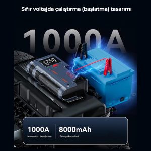 1000A tepe akımı sayesinde, sıfır voltaj seviyesinde dahi aracı çalıştırabilir.