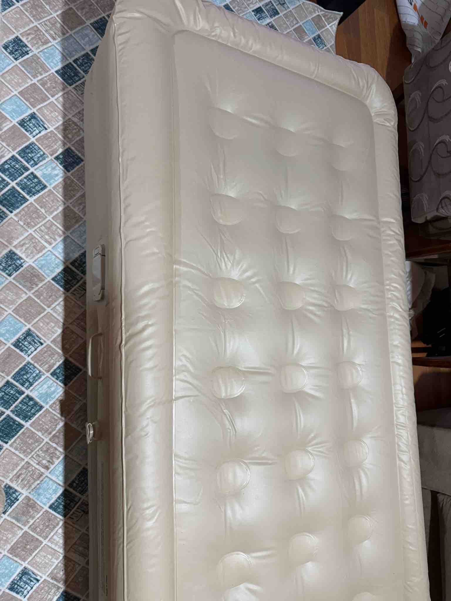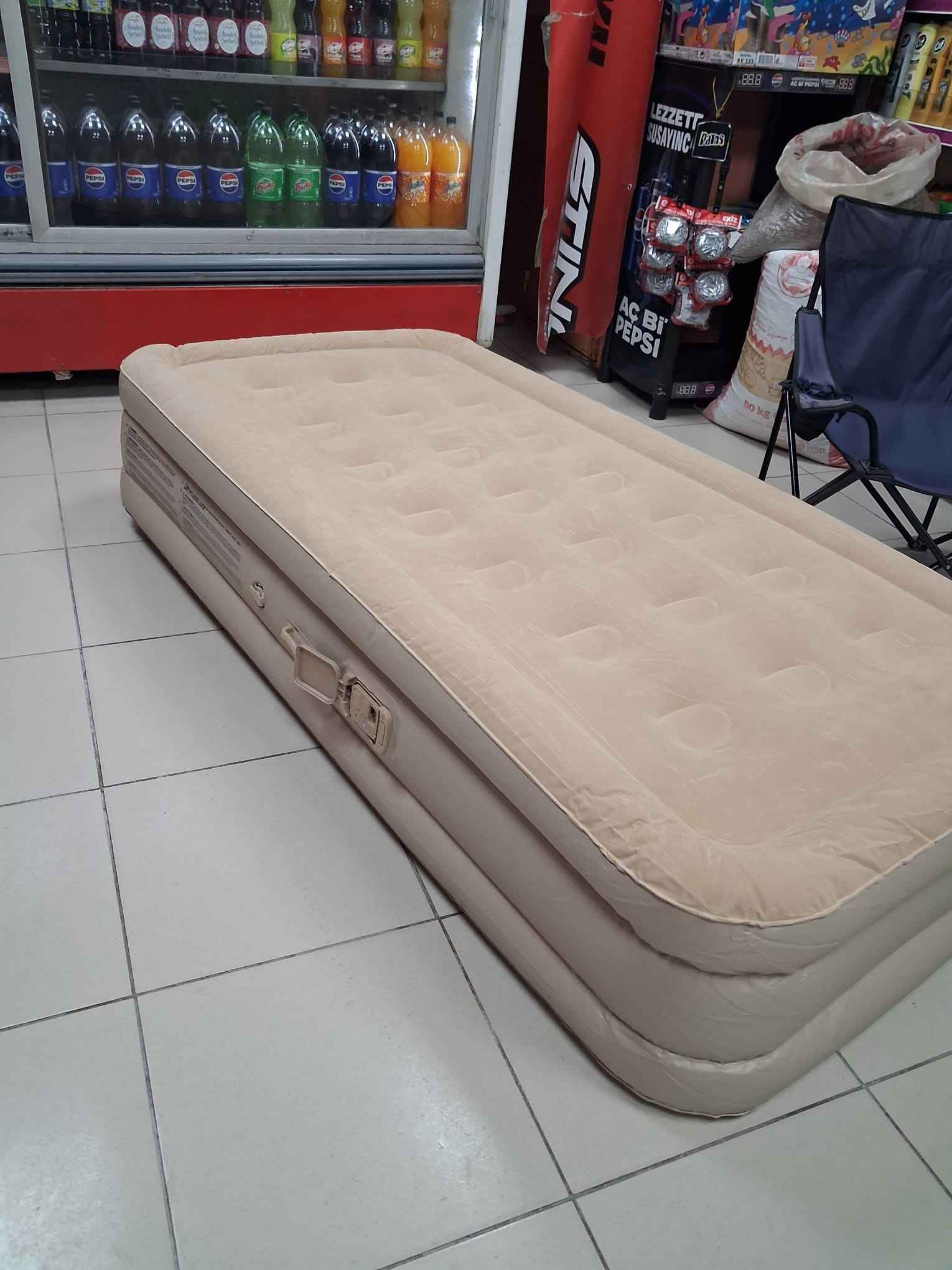 Muhteşem bir ürün. Çekmeceli ufak aküsünü yanında gelen farklı uçlu aparatlar ile ister harici kullan istersen yatağa tak düğmeye bas otomatik şişsin. Kullanmayacağın zaman otomatik vakumlat katla çantaya koy. Süper bir ürün. Çift kişilik olanını da alacağım. Elinize sağlık. Teşekkür ederim.
