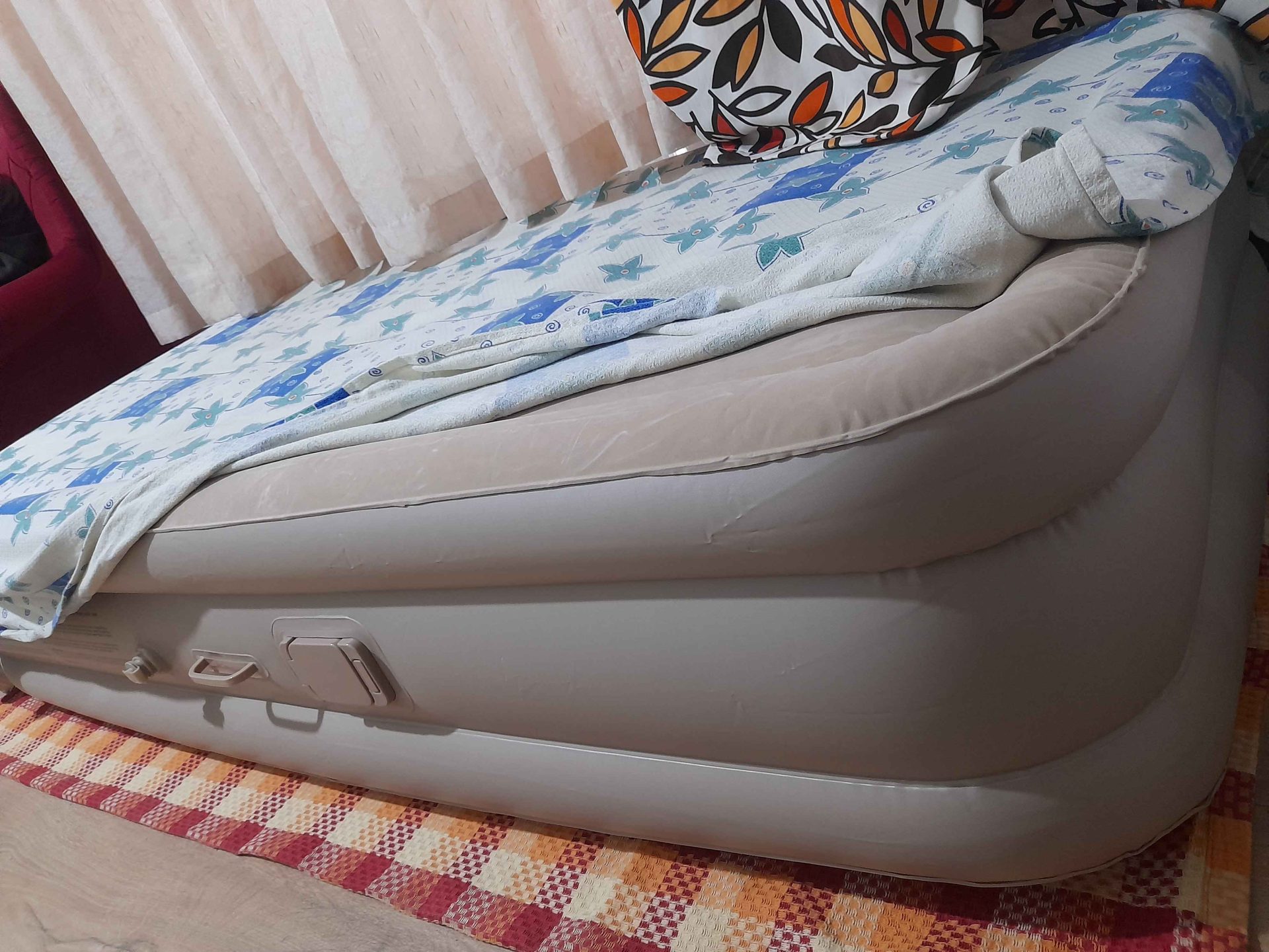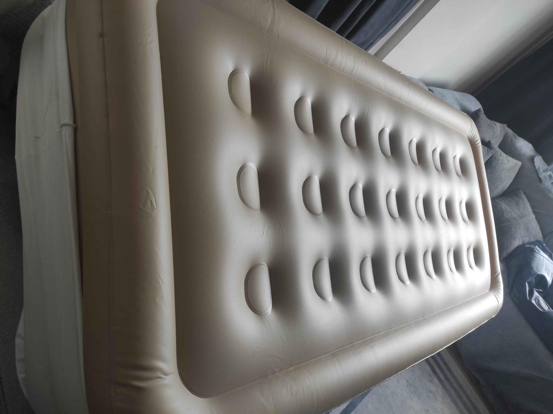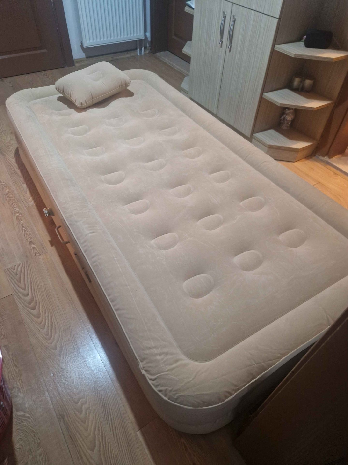 Ürünü alır almaz çektiğim fotoğrafı ve beklediğimin çok üstünde bir ürün çıktı. Döne döne rahatça uyunulabilecek bir yatak. Koltuk yüksekliğine çok yakın ve yerden soğuk alacak gibi değil. Ancak hava kaçıracak mı henüz bilmiyorum. Sağa sola yatma yanlama gibi bir durumu yok asla 👍