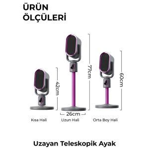 kısa hali: 42cm – uzun hali: 77cm – orta hali 60 cm 2 yıl garantili