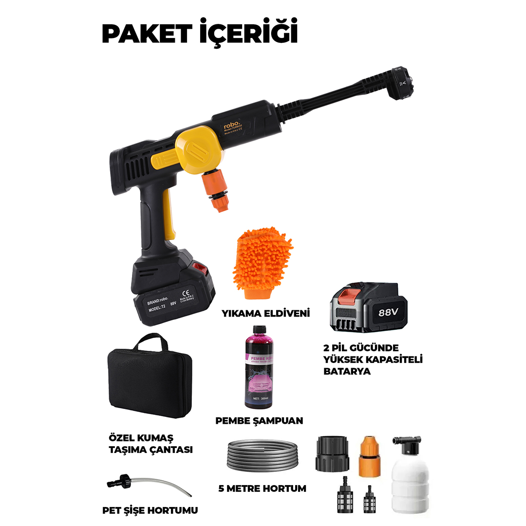88V Bataryalı Taşınabilir Basınçlı Yıkama Makinesi – 6’sı 1 Arada Başlık