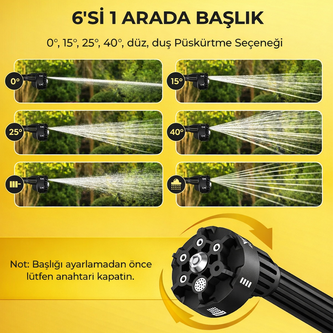 Tek başlıkla 6 farklı püskürtme seçeneği: