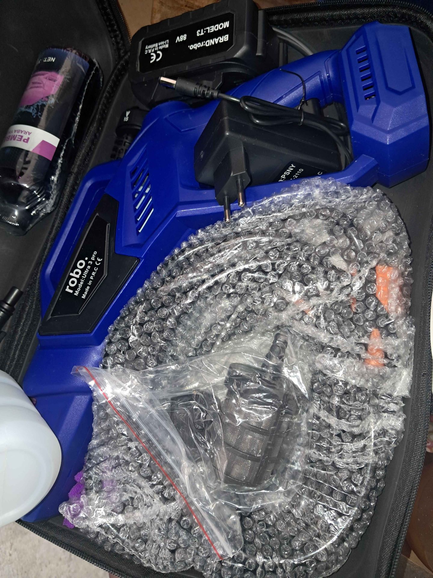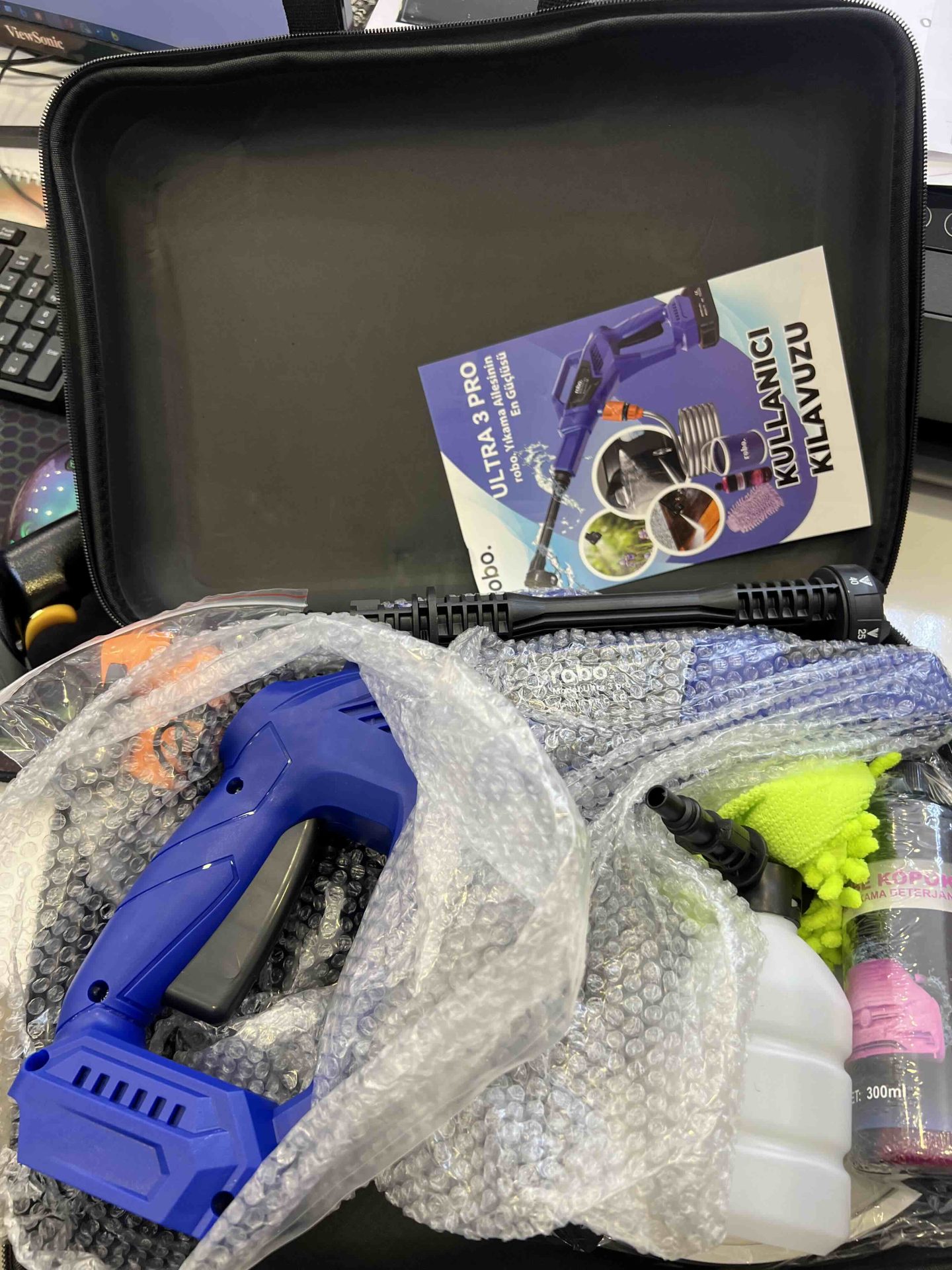 Makina umduğumdan daha büyük ve daha güçlü çıktı. 2 kere Doblo maksi aracımı yıkadım şarjı bitmedi. Kovası, şampuanı, eldiveni ile full set. Ekstra hiç bir şeye gerek yok. Hakkını veriyor parasının. Oto yıkamacıya gitmeye son. Fotoyu ürünü ilk aldığımda çekmiştim. Her türlü BEŞ 🌟
