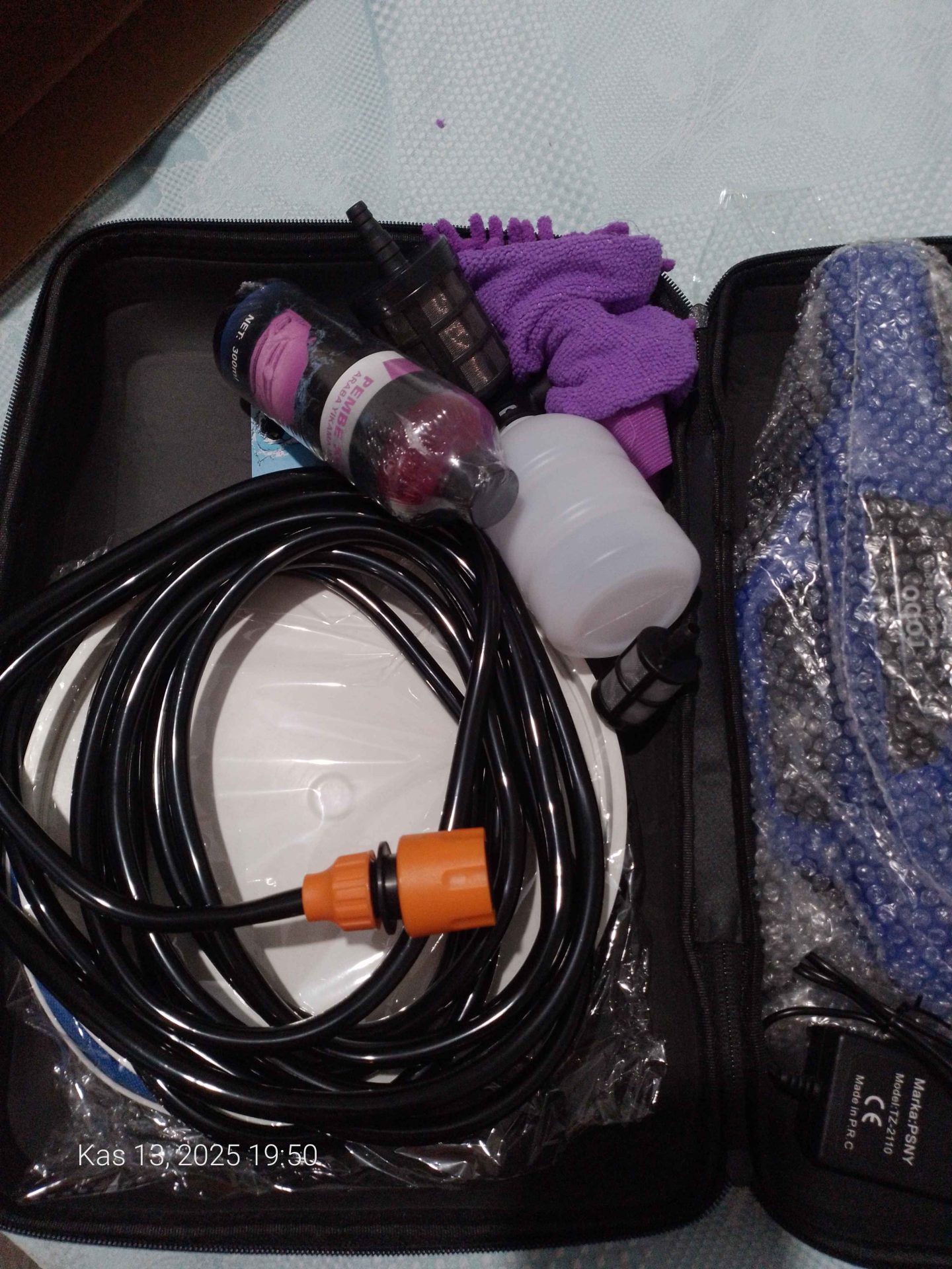 Çok iyi set.Araba yıkama için ihtiyaç olan herşey çantasında mevcut. Müthiş iş çıkartıyor. 3 yıkama parasına kendini amorte ediyor. Daha ne olsun.