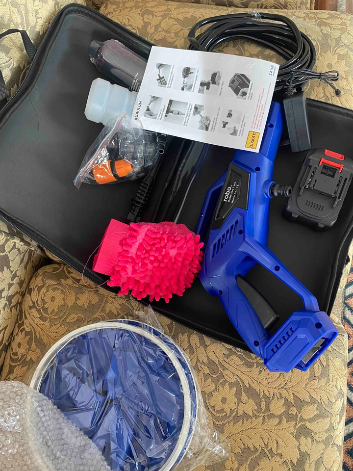 Makina umduğumdan daha büyük ve daha güçlü çıktı. 2 kere Doblo maksi aracımı yıkadım şarjı bitmedi. Kovası, şampuanı, eldiveni ile full set. Ekstra hiç bir şeye gerek yok. Hakkını veriyor parasının. Oto yıkamacıya gitmeye son. Fotoyu ürünü ilk aldığımda çekmiştim. Her türlü BEŞ 🌟