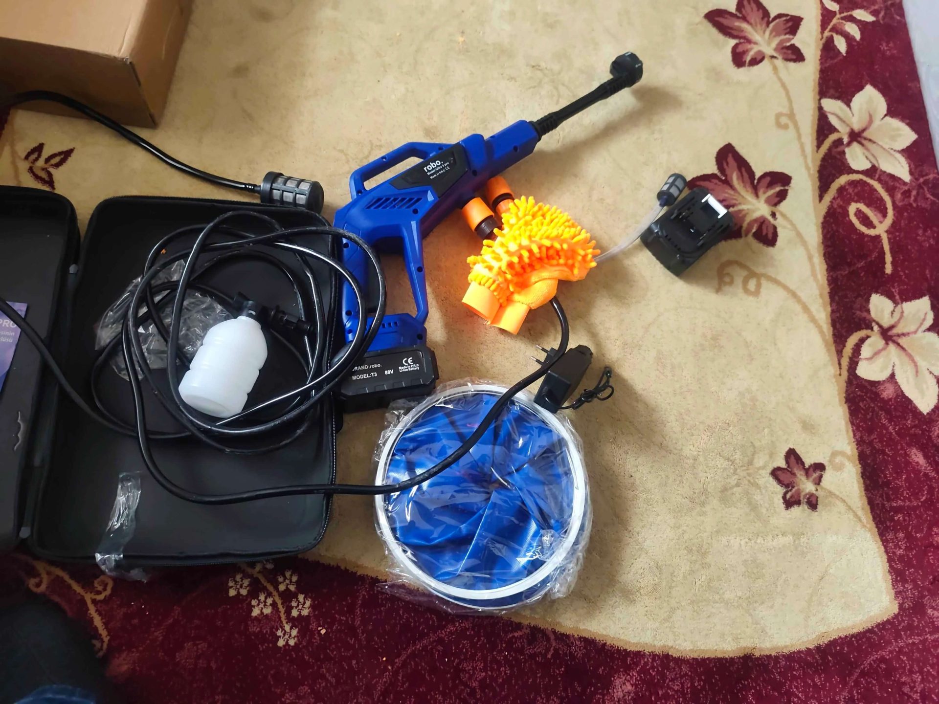 Kargo çok hızlı. 1 günde teslim edildi.arabayi 2 damacanayla kopukleyip yikayabiliyorsunuz.1arabayi komple kopuk yapıp yıkadık diğerini de suyla yıkadım şarjı bitmedi.